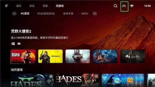 1、打开盖世游戏后,点击页面顶部右侧的手柄图标。