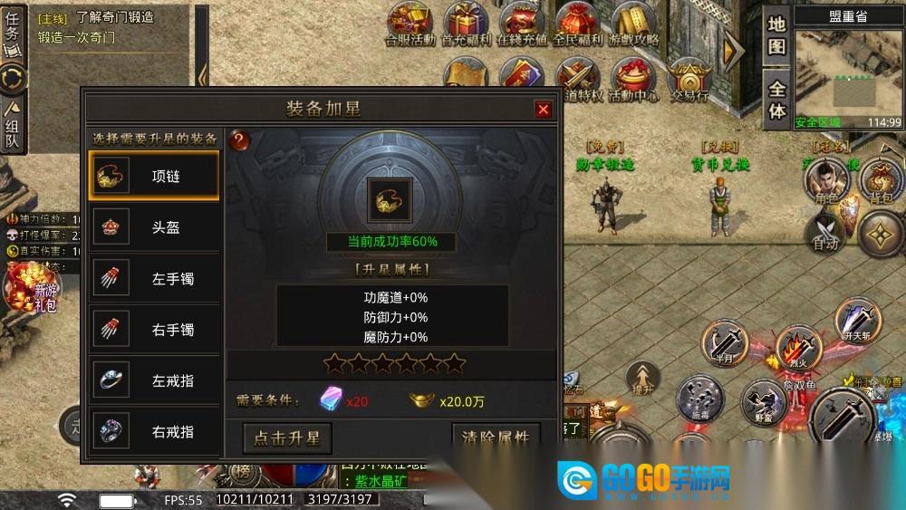 2.金币和强化石优先用于武器和戒指,防具前期以凑套装属性为主。