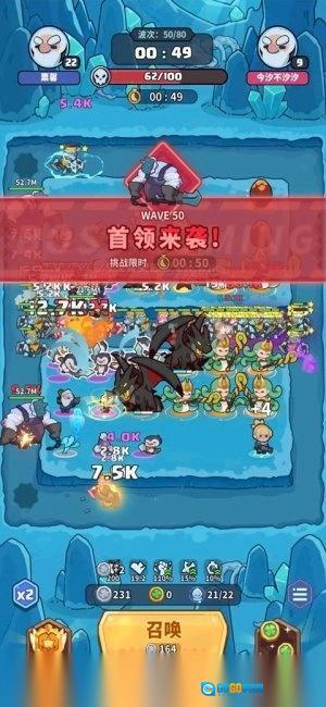等两边加起来1个天使1个龙的时候稍微升级一下传说英雄等级,然后50关后留一组猎手,50~60一倍速操作合成天使,卡位置就把最后一组猎手卖掉。