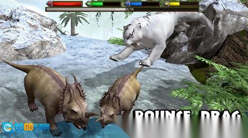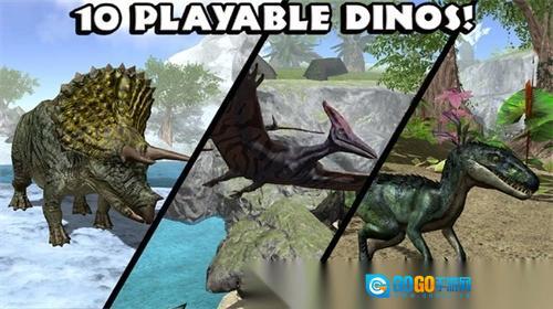 2、你要在遍布未知与危机的丛林里生存,以沉着冷静的态度应对所有状况,和其他恐龙展开搏斗,去争夺食物与各类资源。