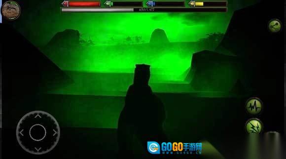 1、进入游戏后,能借助虚拟方向键操控角色前后左右移动,而右下角的按钮则用于攻击敌人。