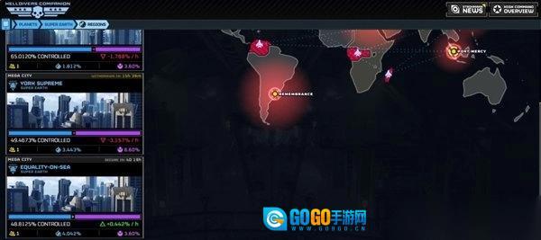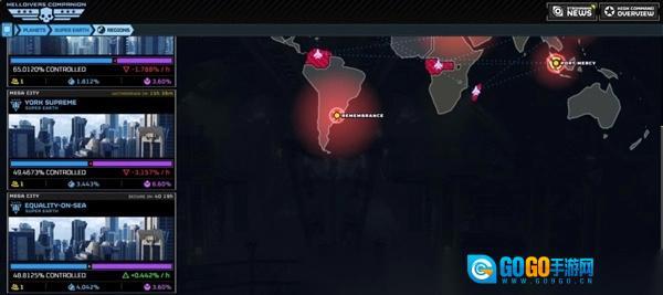 经过一周的猛烈攻势,超级地球已相继失守三座城市——鹰都(Eagleopolis)、行政总部02(Administrative Center 02)与荣都(Rememberance)。目前仅余棒约克(York Supreme)、仰齐浜(Equality-On-Sea)、新近开放的馨家泊(Port Mercy),以及尚未开放的荣城(Prosperity City)。