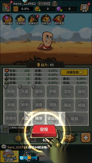 2. 在这里就可以开始点击空投选项获取资源了,前期有一段时间需要持续点击空投键来获取资源。