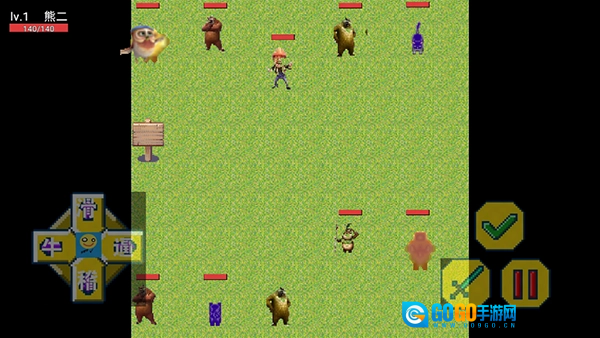 2、然后我们扮演熊二,通过如图的虚拟按键移动;
