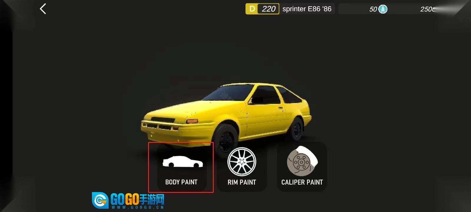 9、另外,玩家还可以自己改装车辆,比如说给车身换个颜色,点击主页下方第四个按钮,然后点击【Body Paint】。