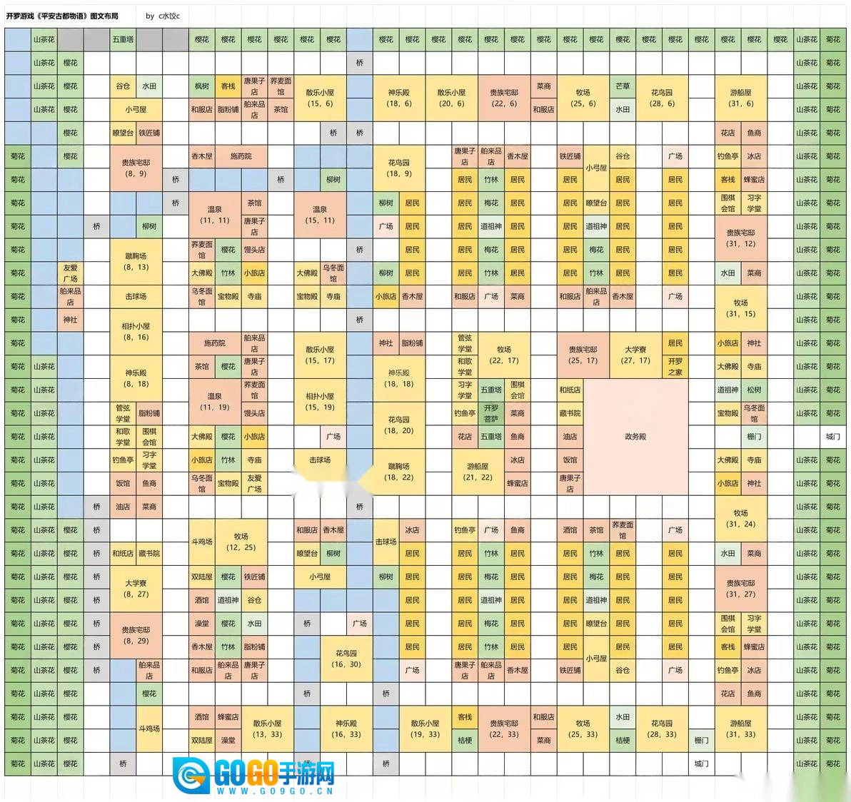 女官町:在此町内可建造和歌学堂、管弦学堂、唐果子店、酒馆、蜂蜜店等设施,这些设施能够使该区域的地价以及商品价格提升20%。