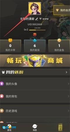 1、畅玩空间的头像是用户身份的象征。进入客户端后,点击下方箭头指示的“我的”选项。