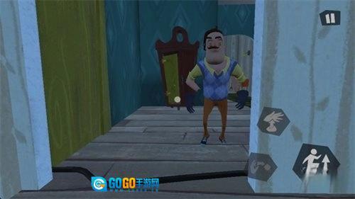 2、刚开始时,邻居会突然出现并发现你,主人公会慌张地挥舞双手,而邻居则会直直冲向你。