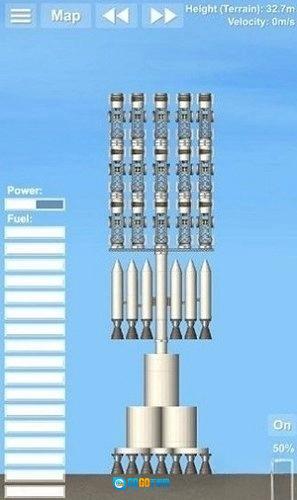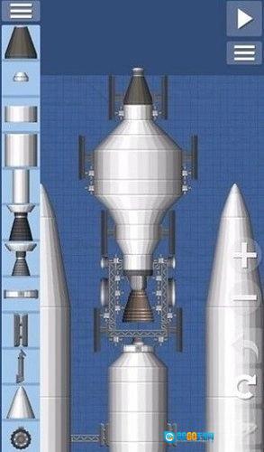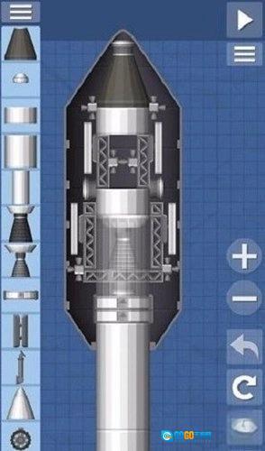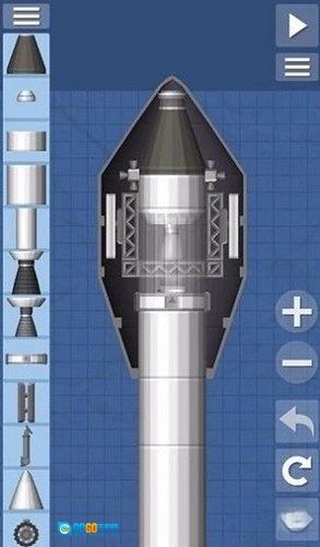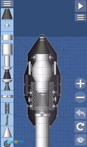 这个火箭是比较简单的火箭样式,里面搭载了一个小型的卫星,超长的燃料箱以及两个辅助的燃料箱提供更多的燃料补给。