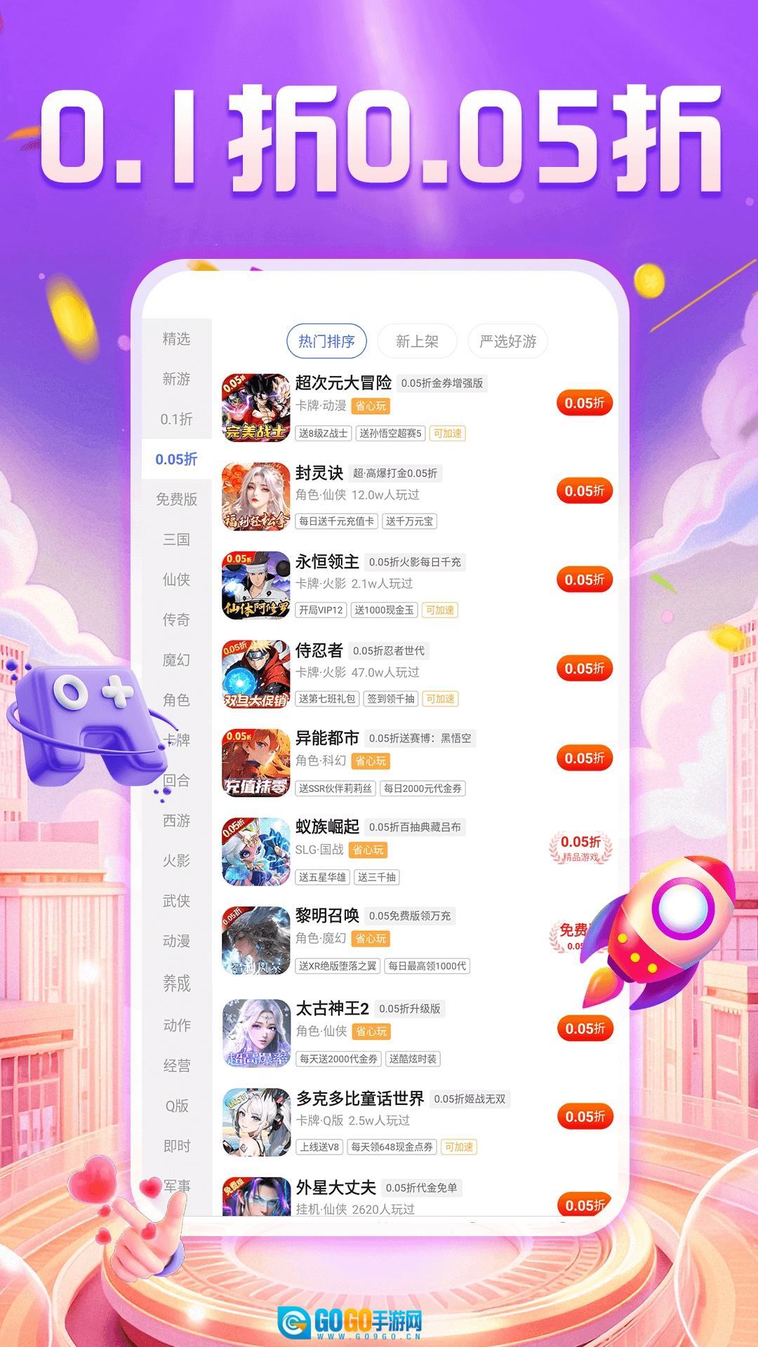 福利宝是一款十分好用的游戏辅助类型的软件,在这里,你可以尽情享受各种游戏福利,我们提供超多的游戏折扣,让用户能够以低价充值,畅玩游戏,同时,还有大量的免费游戏资源供用户选择,让大家无需花费就能玩游戏,有效减轻游戏过程中的消费压力,让用户能够更加轻松无压力地享受游戏乐趣,特别是0.1折的充值优惠,更是省钱划算,此外,我们还全面推荐各种热门资源,海量的游戏选择可以满足不同用户的喜好需求,你可以随时查找并一键你喜欢的游戏,立即开始体验。