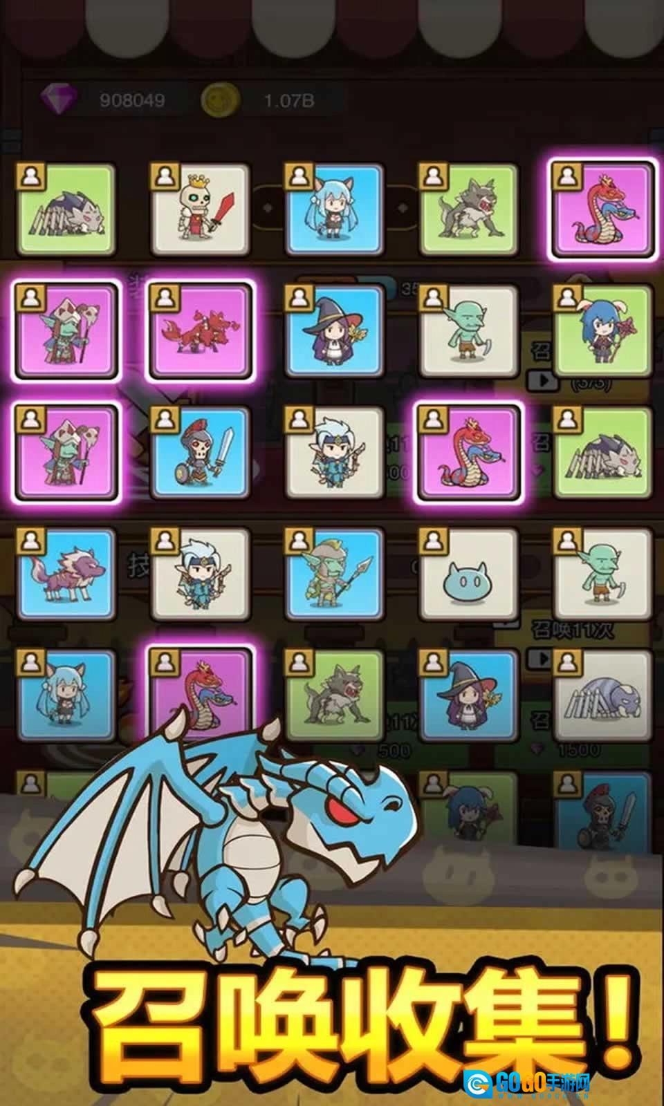 2、召唤收集新的伙伴,各种小怪兽的类型很丰富哦,还可以不断强化起来的呢