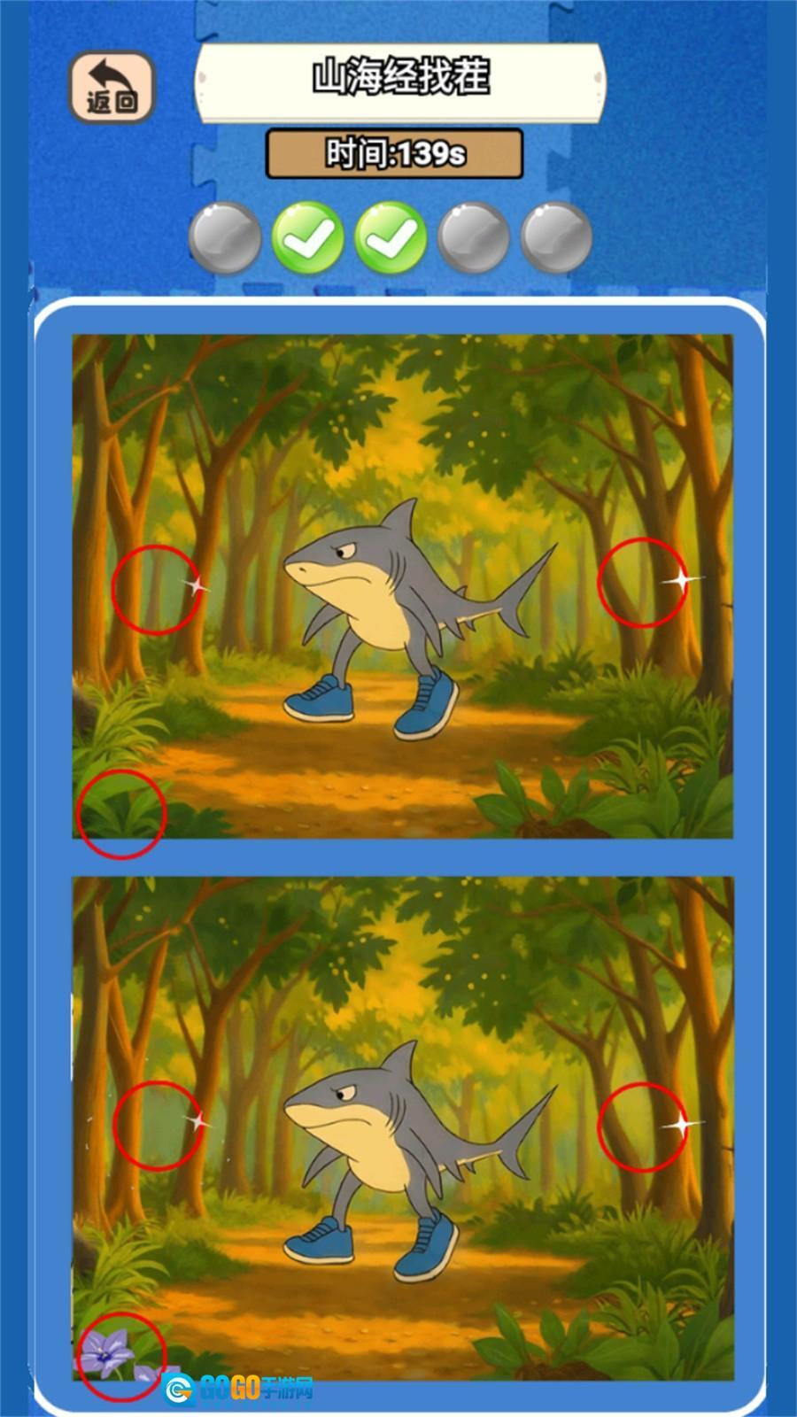 对比两幅山海经场景图,认真查找并标注出潜藏的细节不同之处,以完成关卡挑战。