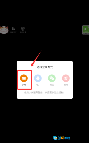 选择通过小米账号登录,点击红框里标注的MI图标就能进入。