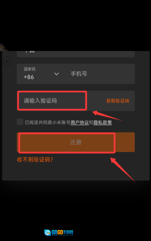 勾选用户协议后填写验证码,再点击橙色的注册按钮,即可完成注册操作。