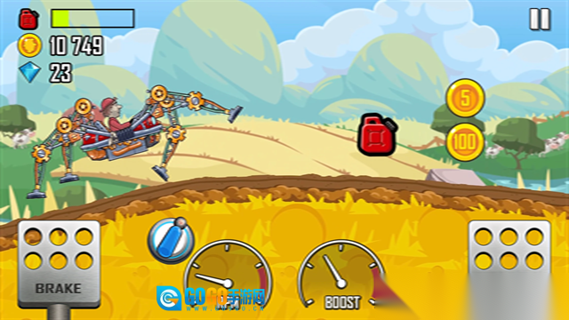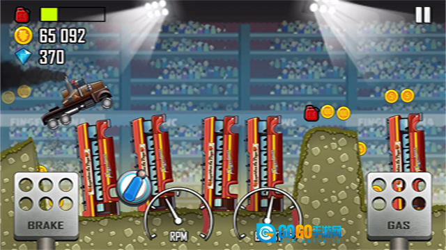 赛道上散落着金币和燃油补给,收集金币可以解锁新车辆和进行升级,燃油是维持前进的核心要素,路线规划至关重要。