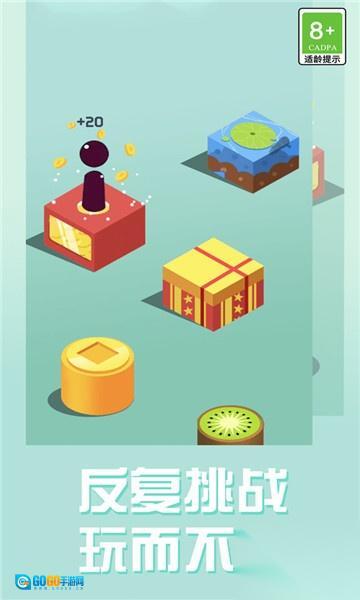 特殊方块暗藏惊喜,踏上弹簧垫能一飞冲天至高处平台,踏上移动方块时得看准时机跃起,各式各样的机关让每一局都有不一样的体验。