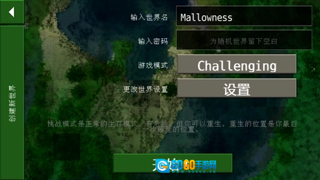 【挑战模式】:这是一种常规的生存模式,你极易死亡,不过可以重生,但重生时会失去所有物品。