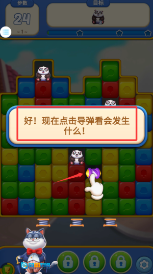 消除方块让熊猫下落到底部,完成解救任务。
