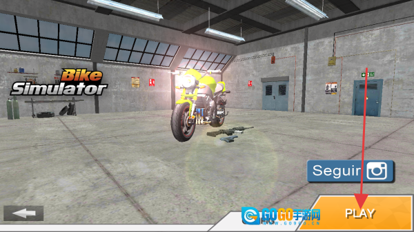 在游戏刚开始的车库场景里,点击右下角那个橙色的【PLAY】按钮,就能开启摩托车模拟驾驶的旅程啦。