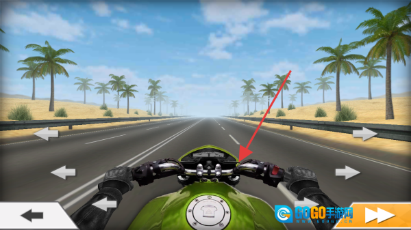 进入公路驾驶界面后,你可以通过操作摩托车把手(也就是画面里车把所在的位置)来控制行驶方向,这样能更好地适应公路骑行的操作手感。