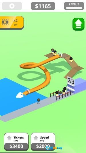 打造专属的水上游乐场,玩家需搭建各式各样的滑道与泳池,以此吸引更多顾客前来游玩,体验水上乐园的热闹氛围与欢乐气息。