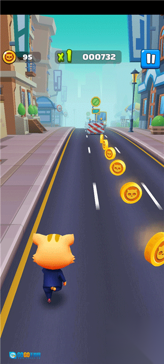 在游戏里,小猫会自动向前奔跑,玩家只需左右滑动屏幕就能切换跑道,既要避开途中的各种障碍,又要收集四处散落的金币和礼盒,以此来完成跑酷挑战。