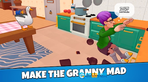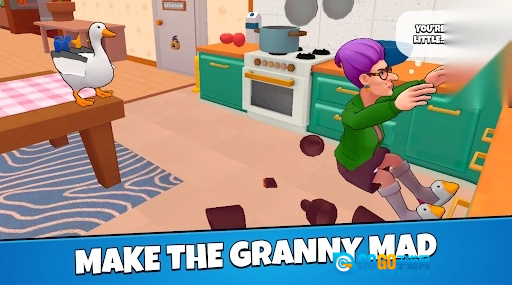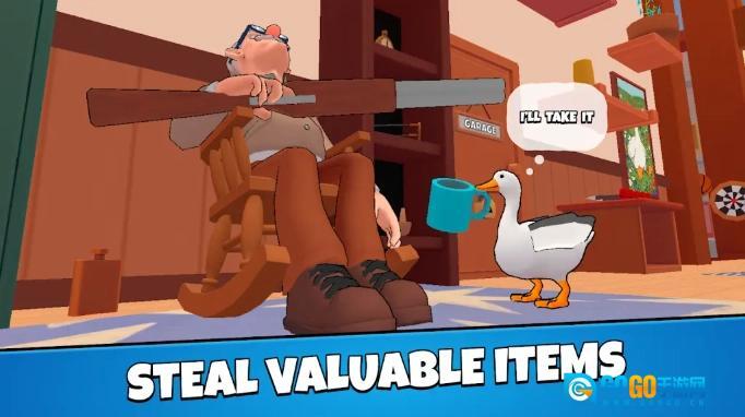 3、操纵鹅在房间里自由探索,寻找各种地方,帮助你在房间里老太太和爷爷。