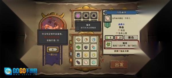 7、 我选择的是强度+14的装备,面对一层的小怪,两回合内就能解决,精英怪也能在一回合内击败。因此我选择了过牌装备——白色面具:每6点护甲抽一张卡。由于怪物的强度较高,血量和攻击并不重要,怒火也用不上,套路形成时不需要暴击就能秒杀敌人,因此我选择了护甲装备。另外,射手自带20护甲,直接让你有3张卡起步。