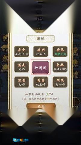 7、有五次免费抽取国运的机会,次数用完了需要每十年才能刷新。