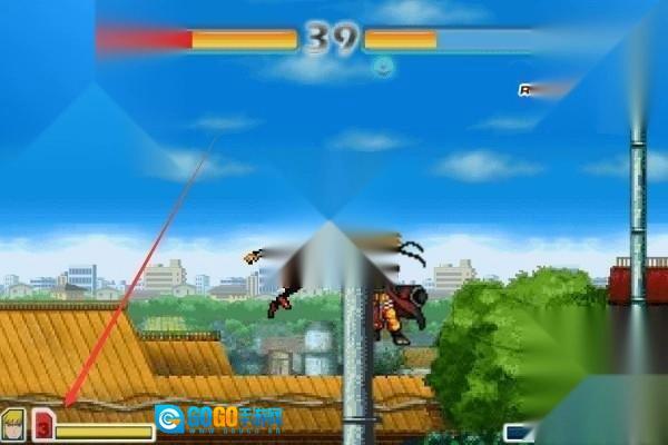 4、当能量值积累到3格满值时,同时按下J键与K键,就能变身为金色鸣人形态。