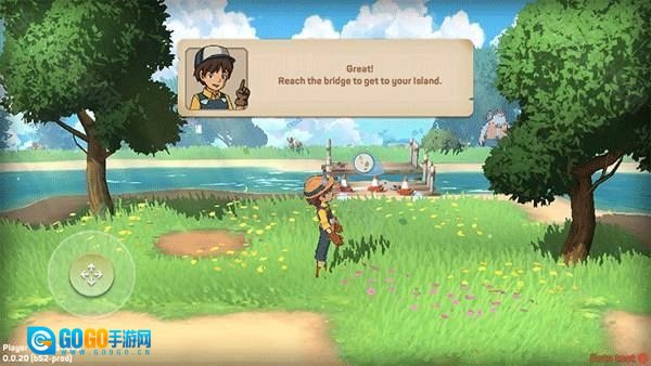 3、依据任务给出的提示,接着操控方向杆来移动,在此我们要抵达河边;
