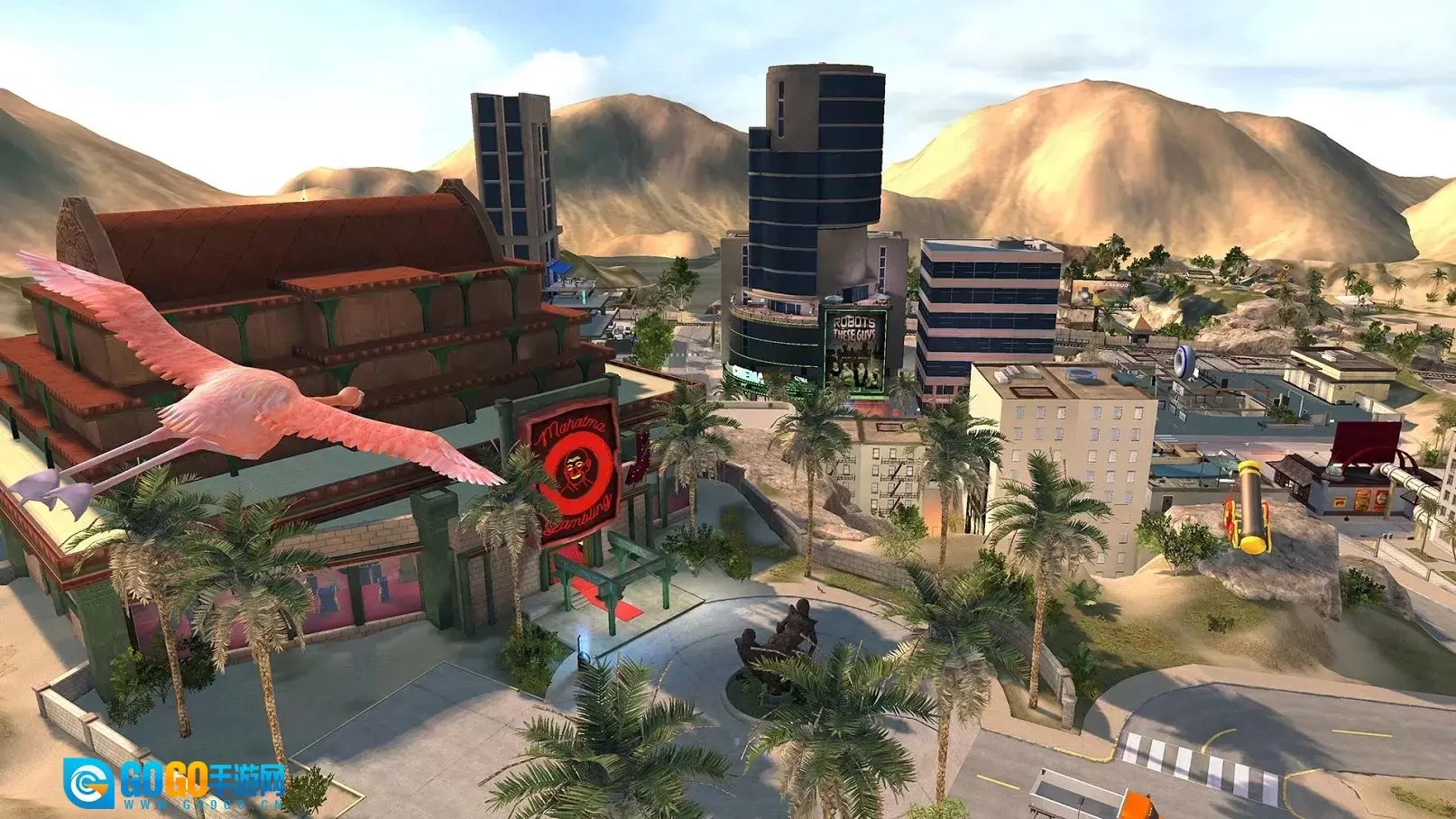 1、任务要求我们获取3号圣所并将其上传至互联网,3号圣所的藏匿位置就在下图前方、巨大广告牌左侧的小山上。