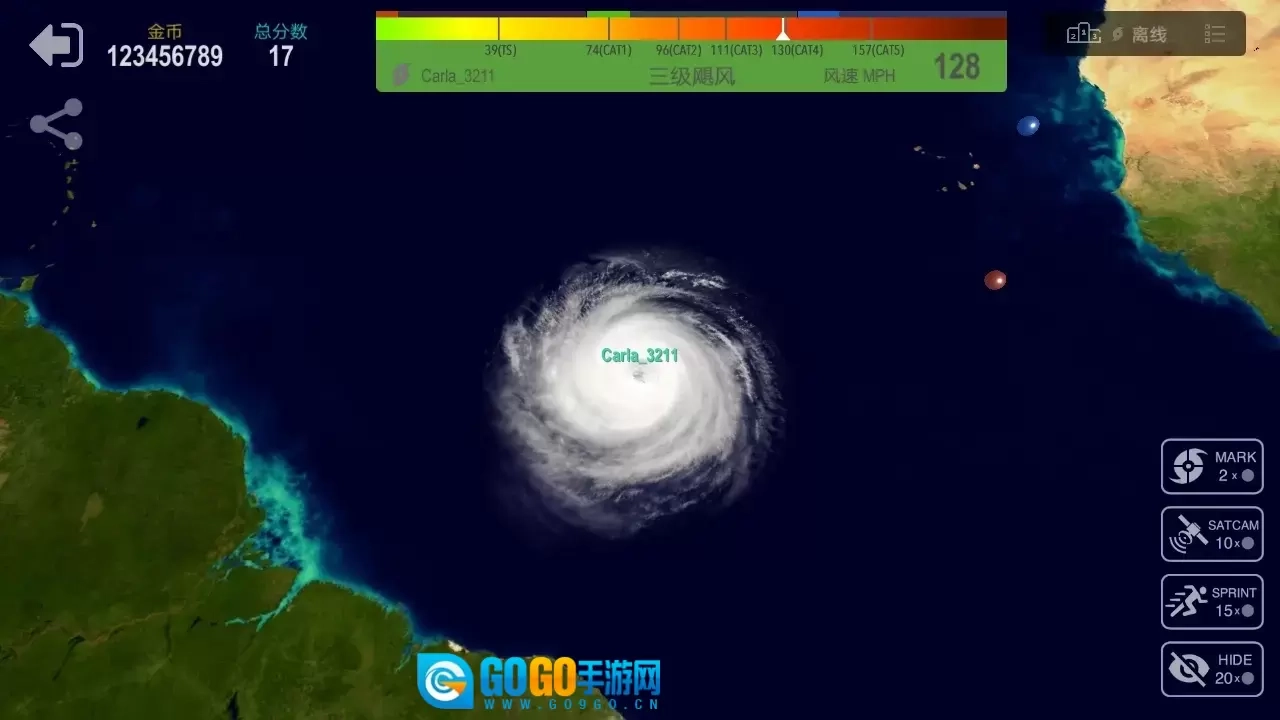 3. 快速升级吞食较小的飓风和提高自己的风力水平。