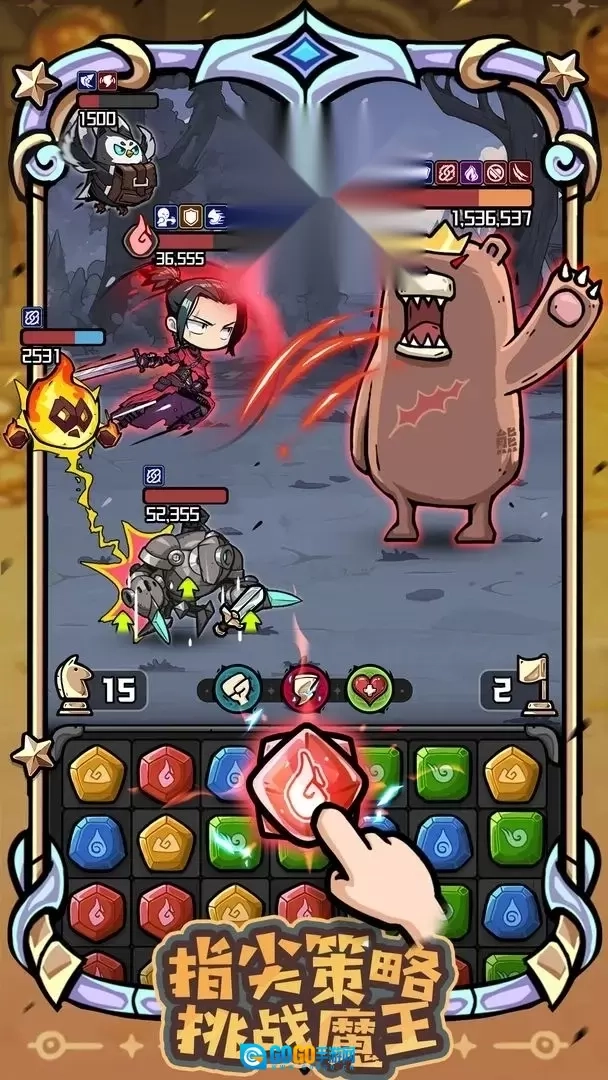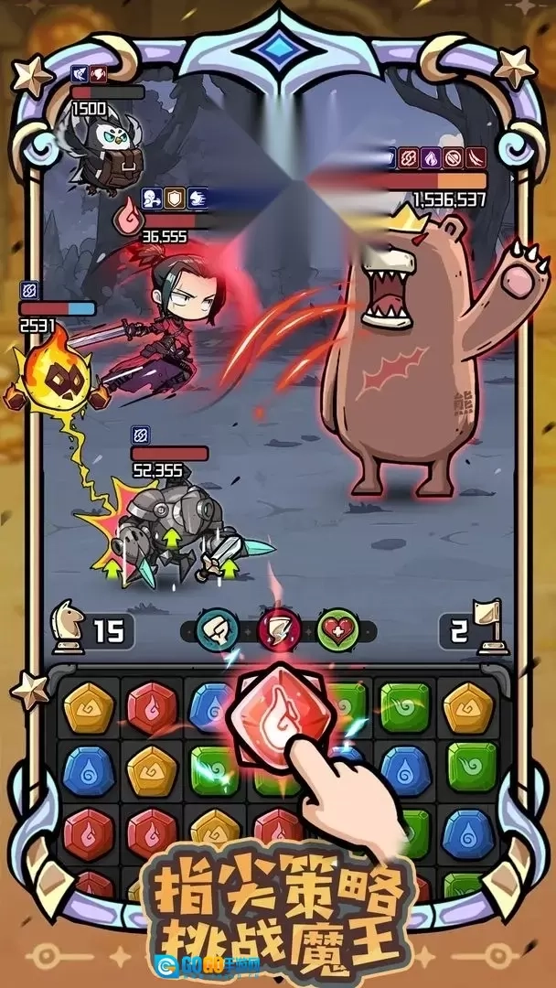 5、每次成功消除都能为英雄积攒能量,等能量攒满后,就能释放强力技能参与战斗,对敌人造成更沉重的伤害。