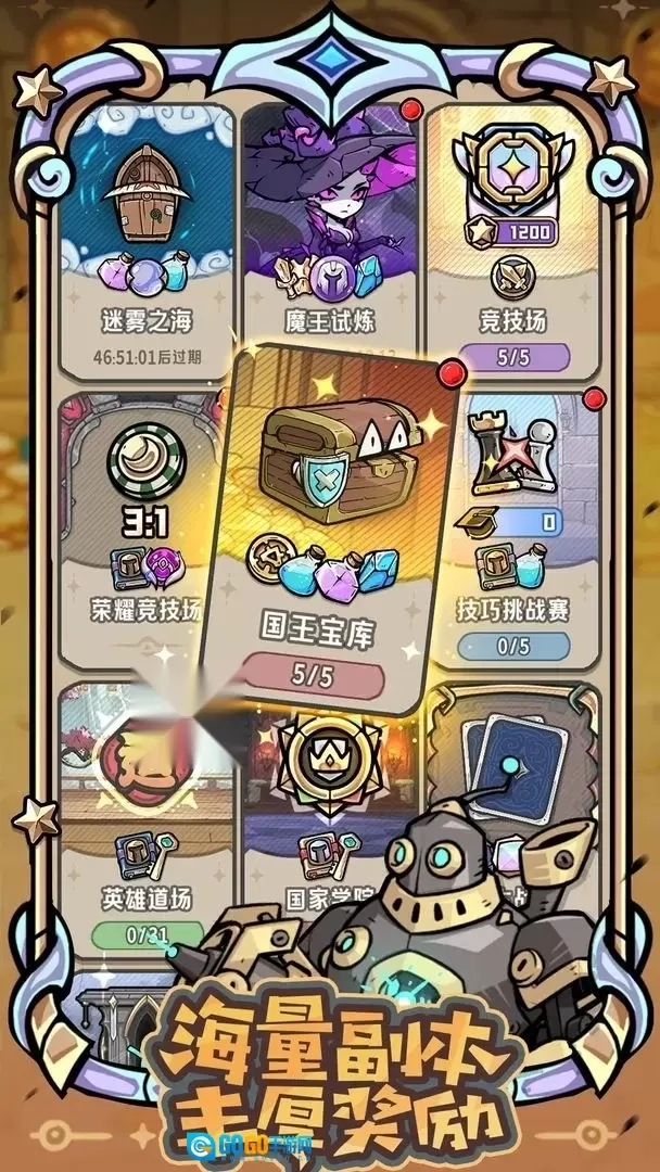 国王宝藏开启轻松爽快的无压力寻宝之旅;迷雾之海展开充满意外惊喜的肉鸽探险;魔王试炼设置层层加码的挑战,助你赢取SSR装备;还有更多趣味副本,等待你来探索发现。