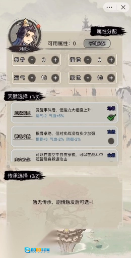 一、开局【家世】属性点选择加1-9点