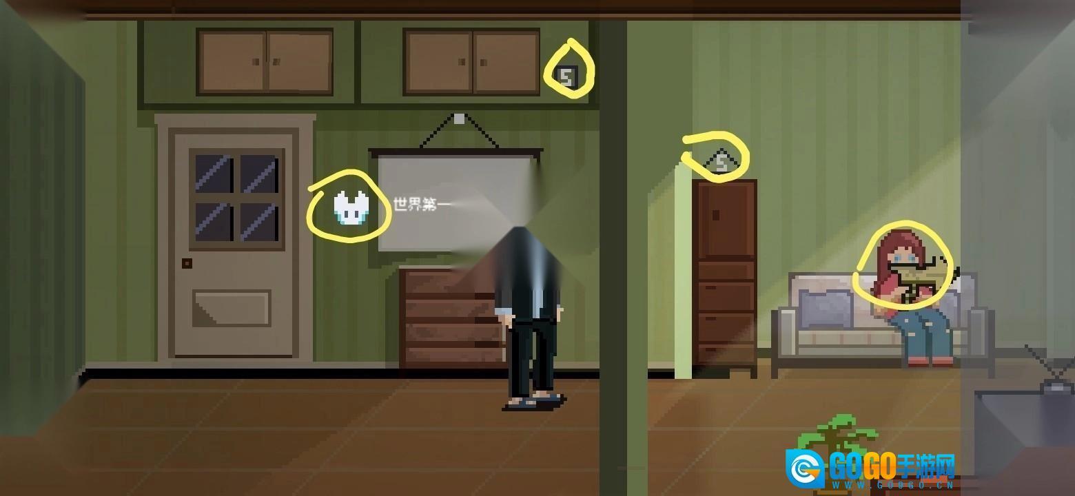 宝箱需要密码,根据墙上的提示,密码是525,拾取橘猫,拖动到妻子身上。
