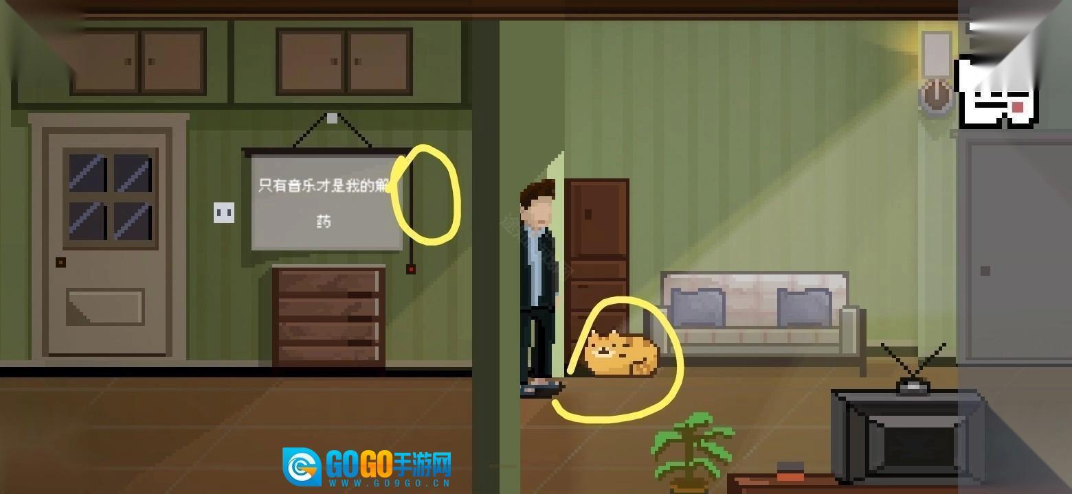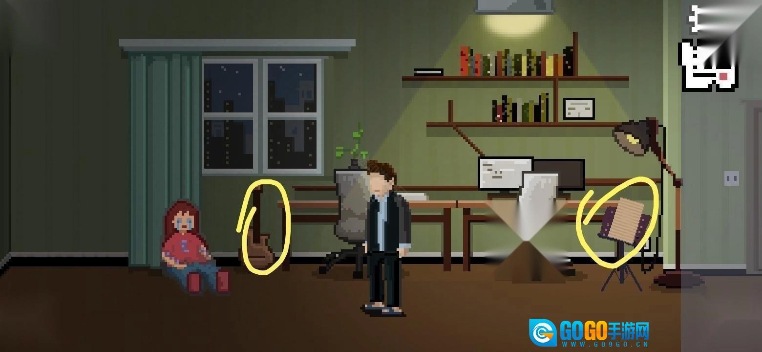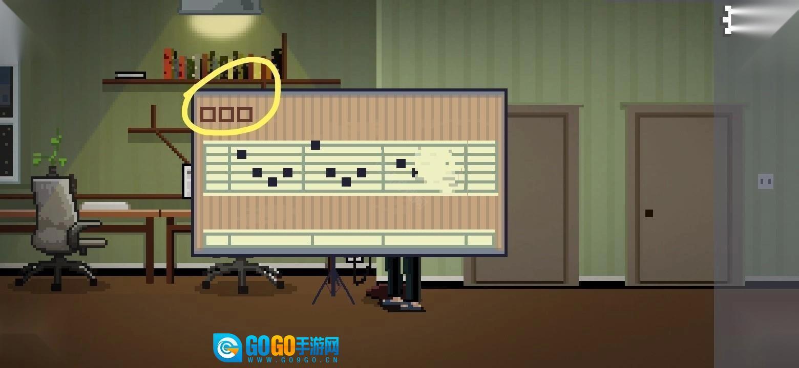 进入书房,给吉他装上弦,吉他上有2个圆形;拼好乐谱,乐谱上有三个正方形。给客厅里的留声机输入“233”,飘出三个音符,结合乐谱,在吉他上演奏245414543465,我第一次玩的时候解不出谜题,一个个硬弹的你敢信?