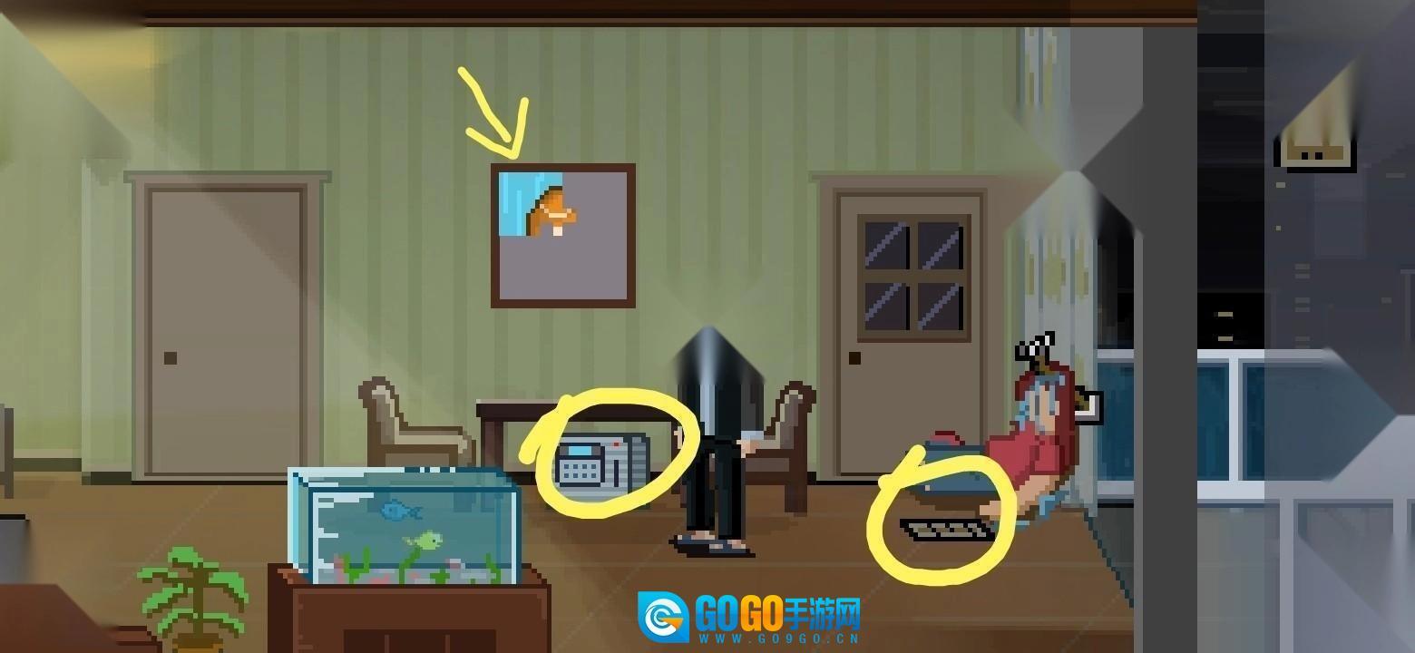 客厅墙上的画后面,输入窗户上显示的“coke”获得可乐,输入墙上散落的“chip”获得薯片,这里注意没拼电脑桌上拼图就输入coke,获得的可乐会导致游戏失败。根据冰箱上的纸条,把可乐薯片摆在电脑桌上,获得光盘,插入电脑,选择右边,movie。如果选TapTap游戏会失败,得到一个成就。