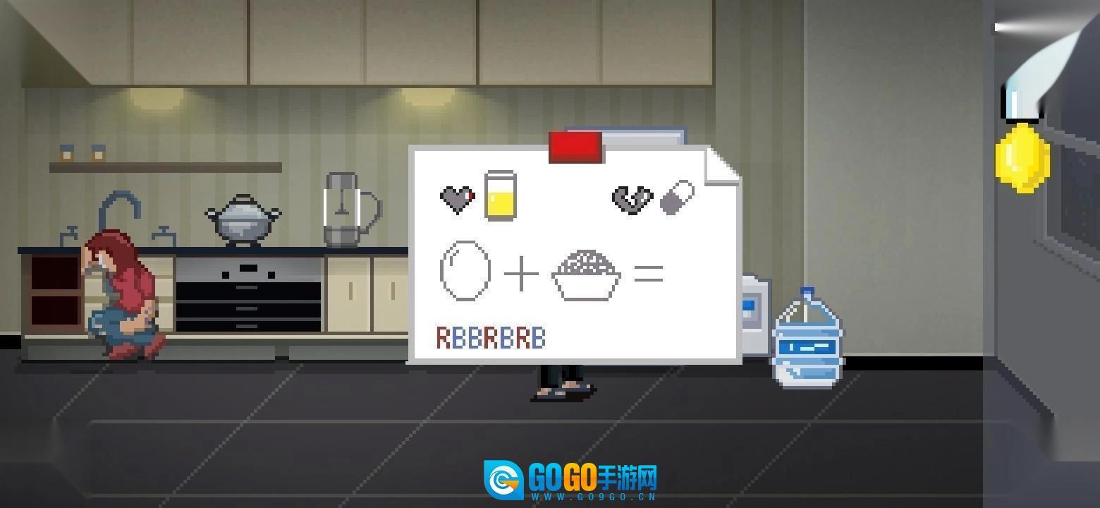 打开冰箱下层获得一个柠檬;点击水桶装饮水机,根据冰箱上贴的纸条提示的红蓝点击水龙头,打开后即可用玻璃杯装水。把柠檬和水分别装入榨汁机,拾取柠檬汁喂给妻子。