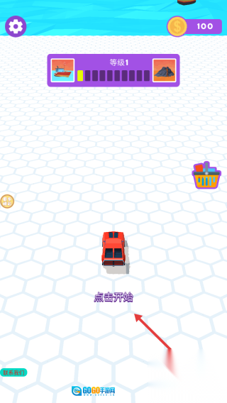 点击【点击开始】按钮,驾驶红色小车开启等级1的挑战,以此熟悉六边形赛道的场景。