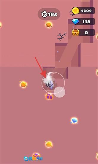 进入挖掘场景后,操控钻头收集金币与钻石,在18秒的限时内获取资源,以此提升战车的战斗力。