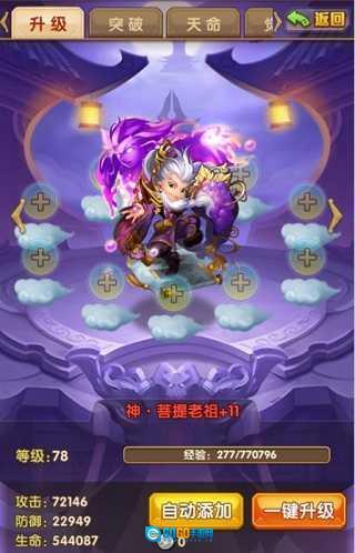 神将通过吞噬其他小兵或蟠桃获得经验,提升神将等级,获属性收益。