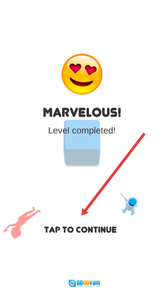 完成LEVEL-1后,会出现显示“MARVELOUS!”的界面,此时点击“TAP-TO-CONTINUE”即可进入下一关的挑战。