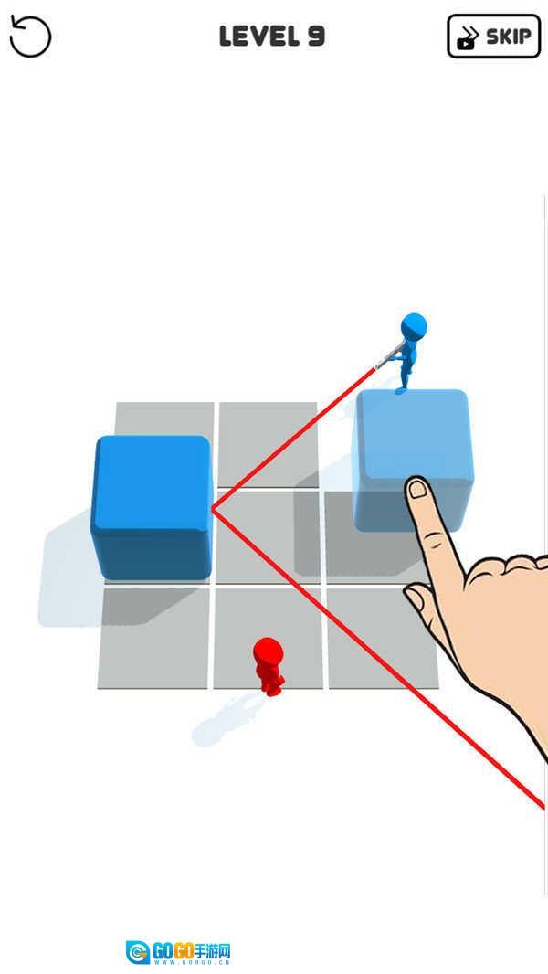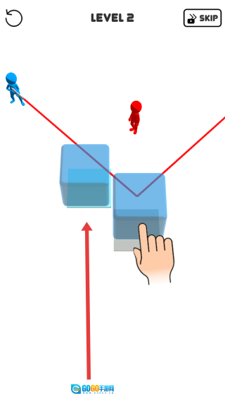 进入LEVEL-2界面后,按照提示点击蓝色方块来调整其位置,帮助红蓝小人继续推进游戏进程。