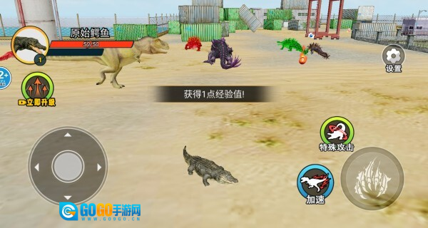 2、利用虚拟摇杆控制着自己的小鳄鱼四处探索,遇到可以吃的东西立马提升经验值。