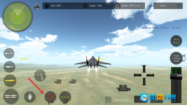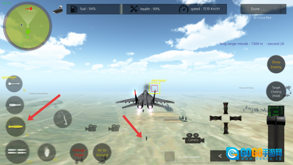 锁定地面上的建筑、车辆等目标,通过发射导弹与炸弹将其摧毁,以此完成任务并提高得分。