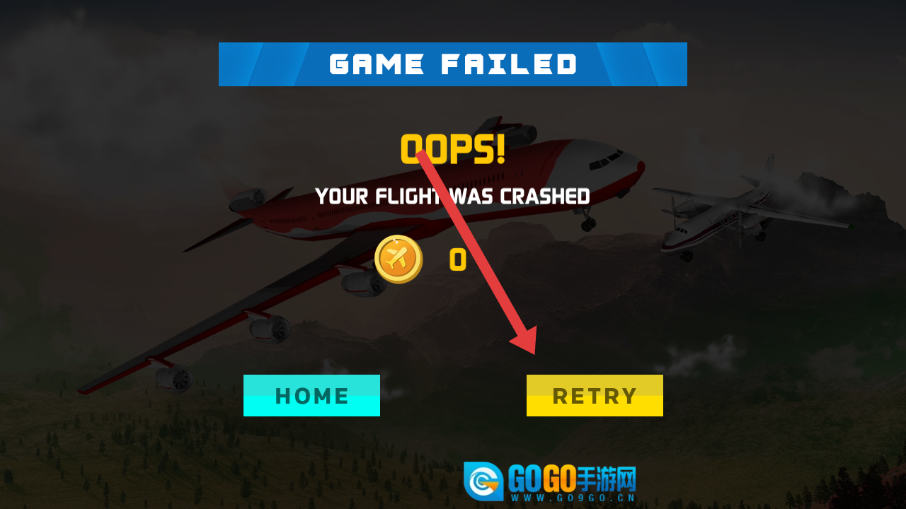 要是在起飞前遇到别的障碍物就会失败,点击界面右侧的RETRY按钮,重新尝试完成飞行挑战。