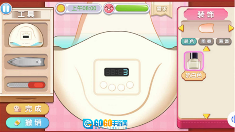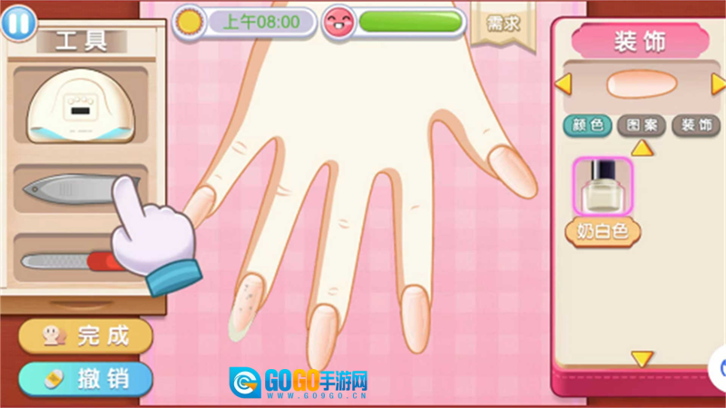 在美甲操作界面中,左边陈列着各式各样的美甲工具,右边则提供了丰富的装饰选项。大家可以依据自身需求挑选合适的工具与装饰,为角色开展美甲操作,从而完成美甲任务。