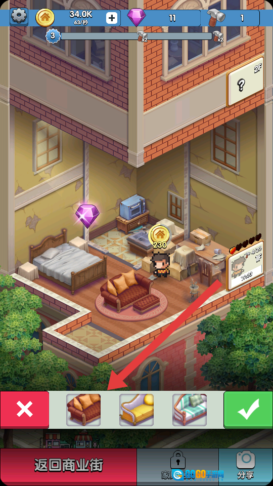 挑选性价比高的沙发来布置家具,把房间的空白区域合理填满,这样能触发加成效果。完成布置后持续收集资源,就能快速提高房间等级。